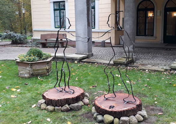 In gemeinsamer Projektarbeit entstand eine Skulptur in Anlehnung an das Logo der Evangelischen Suchtkrankenhilfe Mecklenburg-Vorpommern gGmbH, die heute das Rondell vor dem Tessiner Gutshaus schmückt. Zu sehen, wie sich Stahl unter ihren Händen verformt, faszinierte und begeisterte nicht nur die männlichen Patienten. Alle Beteiligten waren sichtbar stolz auf ihr Werk.